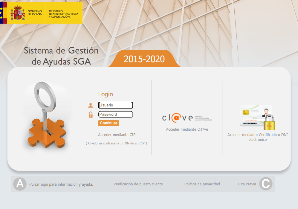 Para ello pulse en el enlace “Acceder mediante CIP” y se podrá realizar el acceso con este metodo según se muestra en esta pantalla: